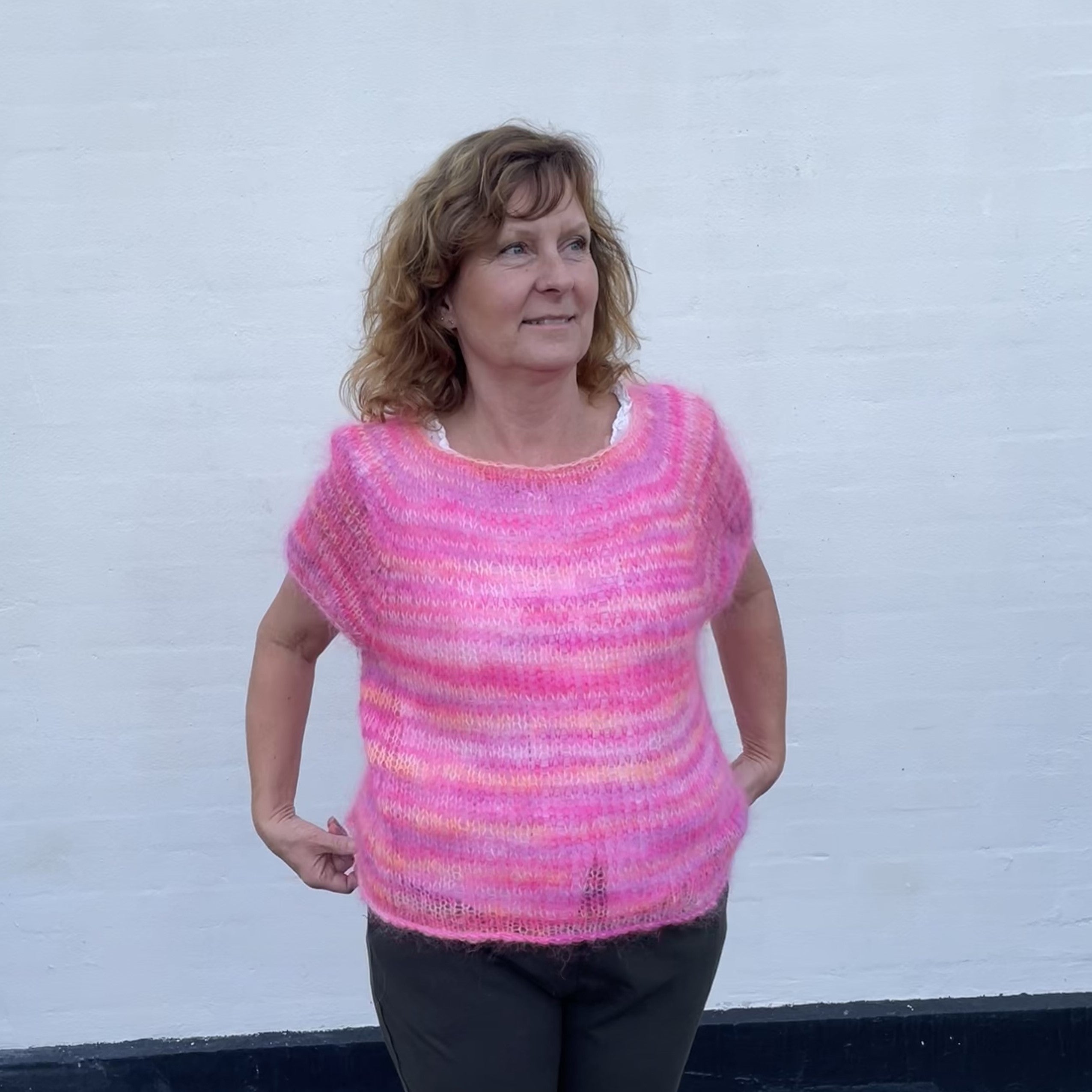 Natasjas T-Shirt er en luftig t-shirt strikket oppefra og ned på pind 10 mm. T-shirten er strikket i rent glat, så her er ingen vrangmasker.